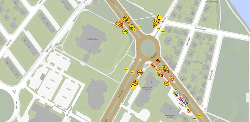 Hraðinn verður tekin niður í 30 km/klst og annarri akreininni til suðausturs lokað á stuttum kafla framhjá strætóskýli. Búast má við umferðartöfum og eru vegfarendur beðnir um að sýna aðgát og tillitssemi og aka varlega.