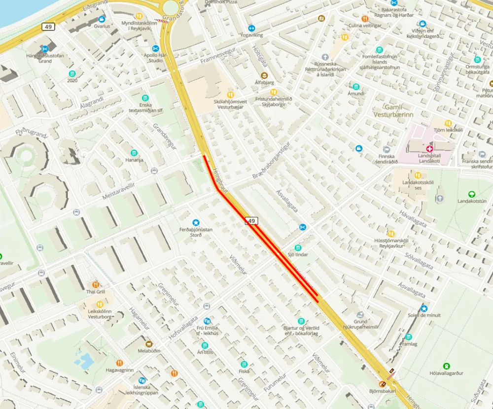 Á miðvikudagskvöld, 10. maí, verður unnið á Hringbraut til norðvesturs og sá hluti götunnar lokaður frá gatnamótum við Ljósvallagötu og að Hringbraut 78. Þá verður einnig lokað fyrir umferð niður Hofsvallagötu frá Ásvallagötu að Hringbraut.