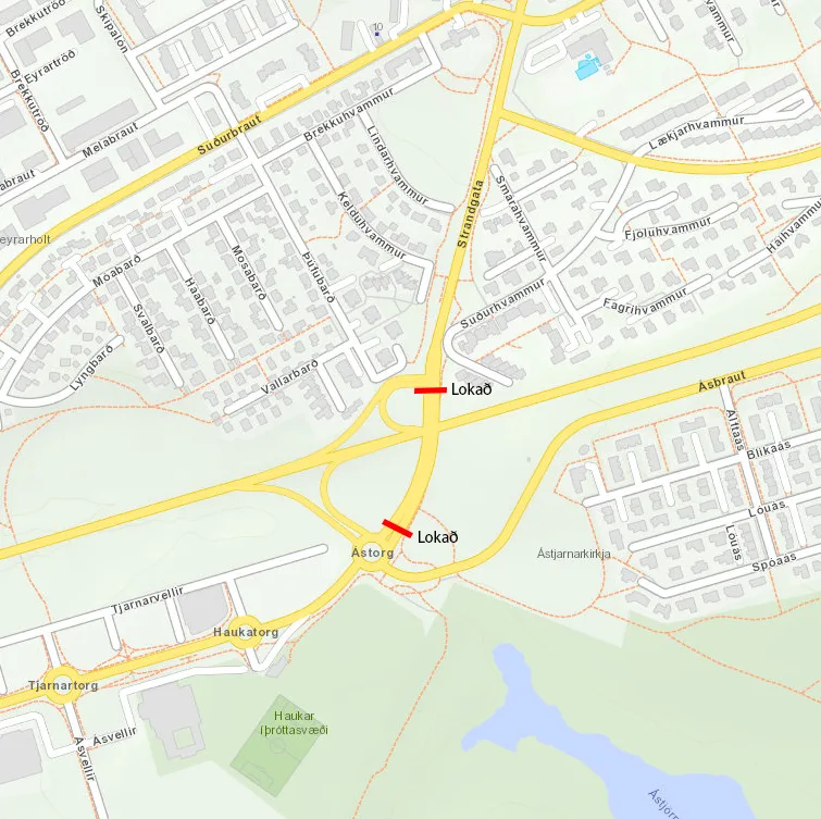 Á morgun, fimmtudag, verður stuttum vegkafla á Strandgötu í Hafnarfirði lokað frá kl. 10-17 vegna framkvæmda, en um er að ræða þann hluta Strandgötu sem liggur undir Reykjanesbraut líkt og sjá má á meðfylgjandi mynd. Hjáleiðir eru um Krýsuvíkurgatnamót og Kaldárselsveg.