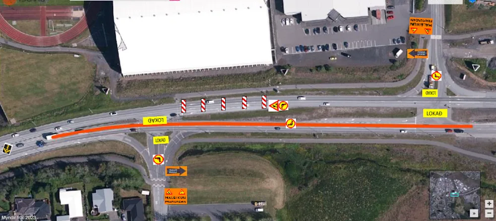 Vegfarendur eru beðnir um að aka varlega, sýna tillitssemi og virða merkingar.