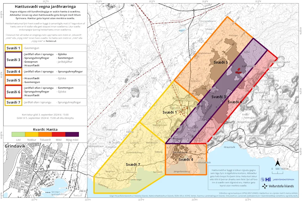Hættumat Veðurstofu Íslands var uppfært í gær, sjá viðhengi og gildir til 5. september 2024, kl. 15.