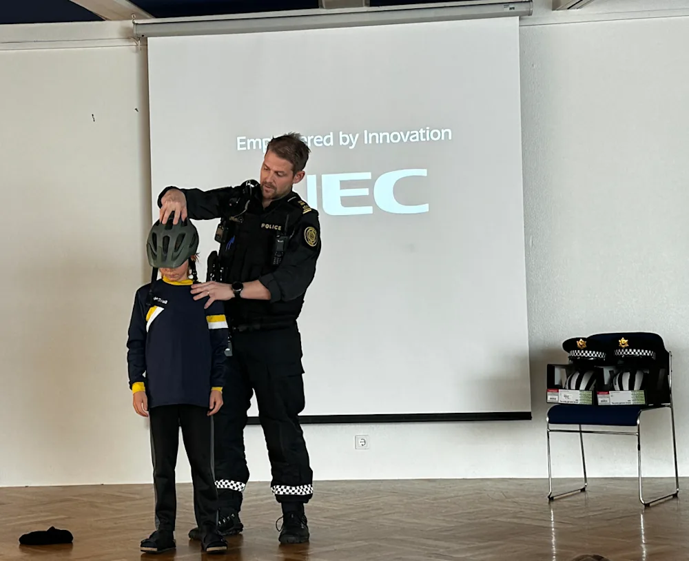 Ekki þarf að fjölyrða um nauðsyn reiðhjólahjálma og þá ættu auðvitað allir hjólreiðamenn að nota, alltaf. Yngsta kynslóðin er vel meðvituð um þetta, ekki síst krakkarnir í 4. bekk í Mýrarhúsaskóla á Seltjarnarnesi. Við heimsóttum þá á dögunum og fórum yfir ýmis atriði sem snúa að reiðhjólahjálmum, en líka mikilvægi þess að fara varlega í umferðinni og að virða umferðarreglur. Krakkarnir voru vel með á nótunum og höfðu margs að spyrja, greinilega mjög áhugasamir um lögregluna. Og ekki minnkaði áhugi þeirra þegar boðið var upp á að skoða bæði lögreglubíl og lögreglubifhjól!