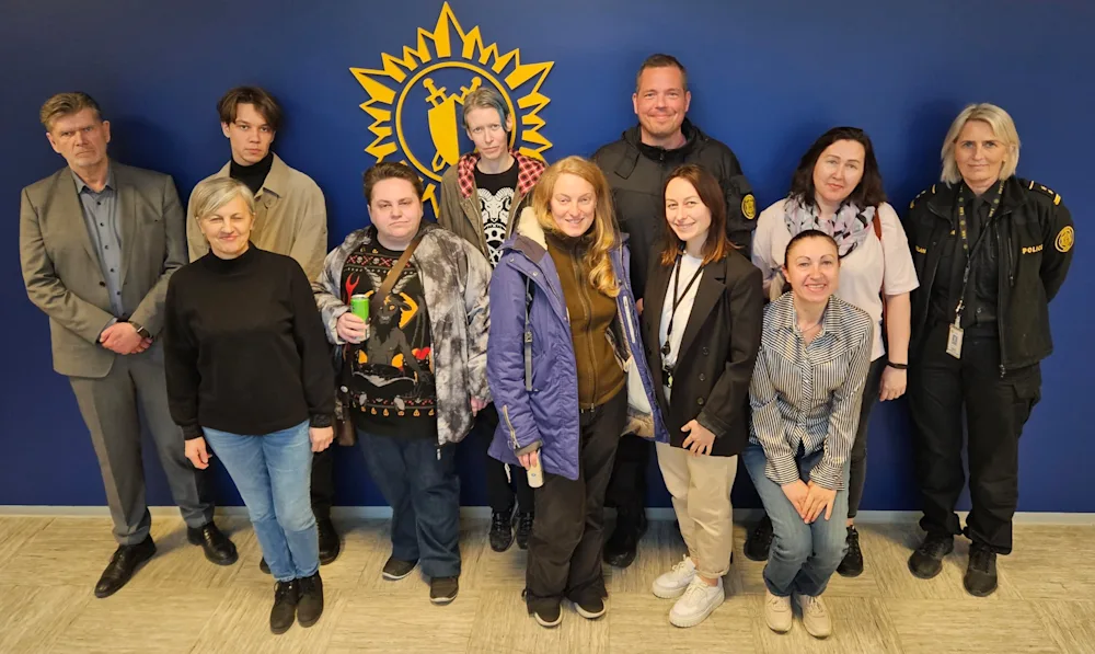 Það er iðulega gestkvæmt á lögreglustöðinni á Hverfisgötu í Reykjavík, en hér má sjá hluta af hópi Úkraínumanna sem þangað kom á dögunum. Gestirnir voru hinir áhugasömustu um íslensku lögregluna og höfðu margs að spyrja. Með þeim á myndinni eru Grímur Grímsson, Unnar Þór Bjarnason og Þóra Jónasdóttir, en þau tóku á móti hópnum og svöruðu hinum ýmsum spurningum sem voru bornar upp.