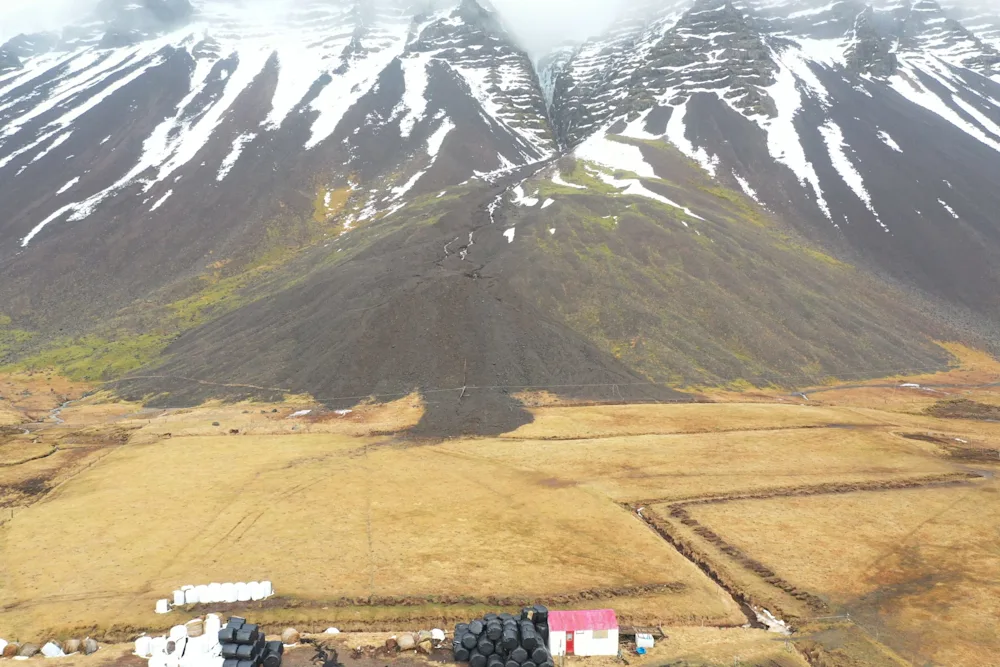 Aur-/grjótskriða við Dynjanda austan Hafnar