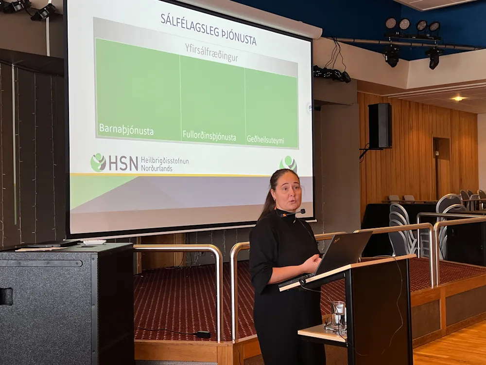 Alice Harpa Björgvinsdóttir, yfirsálfræðingur kynnti sálfélagslega þjónustu HSN. Í erindinu var einnig fjallað um þjónustu geðheilsuteyma hjá HSN og Heilbrigðisstofnun Vesturlands (HVE).