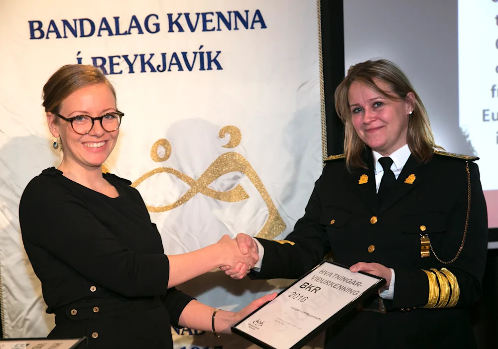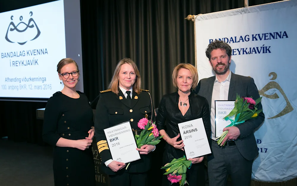 Sigríður Björk Guðjónsdóttir lögreglustjóri og Dagur B. Eggertsson borgarstjóri tóku við viðurkenningunni frá Ingibjörgu Rafnar, fráfarandi formanni BKR, við hátíðlega athöfn á 100. ársþingi Bandalags kvenna í Reykjavík sem haldið var á Grand hóteli, en við sama tækifæri var Ingu Dóru Sigfúsdóttur veittur titillinn Kona ársins fyrir brautryðjandi starf á sviði rannsókna á líðan barna og unglinga í nútímasamfélagi.