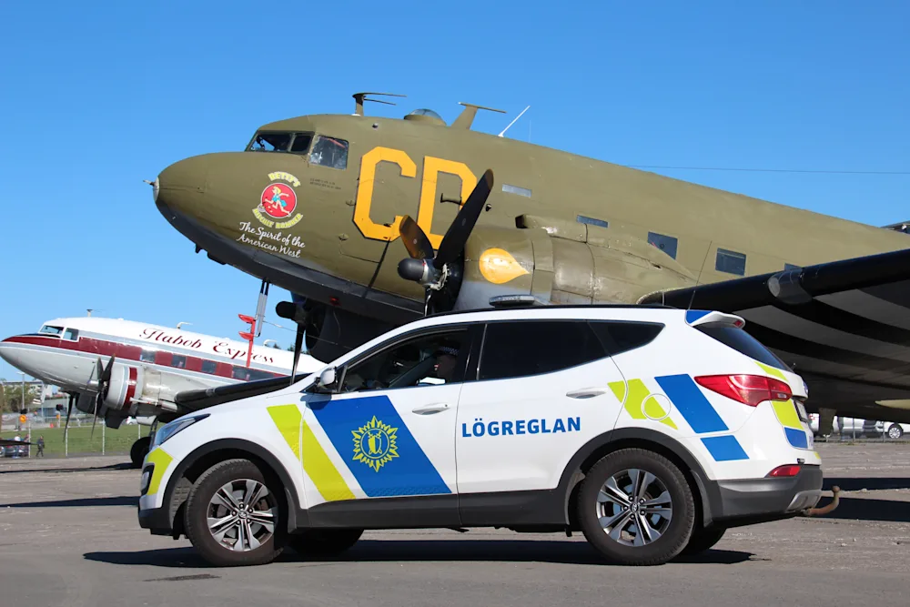Það hefur verið annasamt á Reykjavíkurflugvelli í vikunni, en þar hefur lent hver Þristurinn á eftir öðrum. Vélin sem nær ku hafa flutt sjálfan Winston Churchill á milli landa, en hann gegndi forsætisráðherraembætti Breta í tvígang. Churchill kom til Íslands í seinni heimsstyrjöldinni og þá kannski með umræddri vél. Fremst á myndinni má sjá ökutæki landamæradeildar lögreglunnar, en starfsmenn deildarinnar hafa ákveðið eftirlit með með komum skipa og flugvéla til höfuðborgarsvæðisins og mega stundum hafa sig allan við, slíkur er fjöldinn sem hingað kemur.