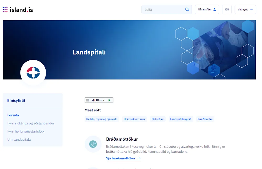 Landspítalinn hefur flutt vef sinn inn á Ísland.is. Um er að ræða einn umfangsmesta vef sem uppfærður hefur verið samkvæmt efnis- og hönnunarstefnu Ísland.is.