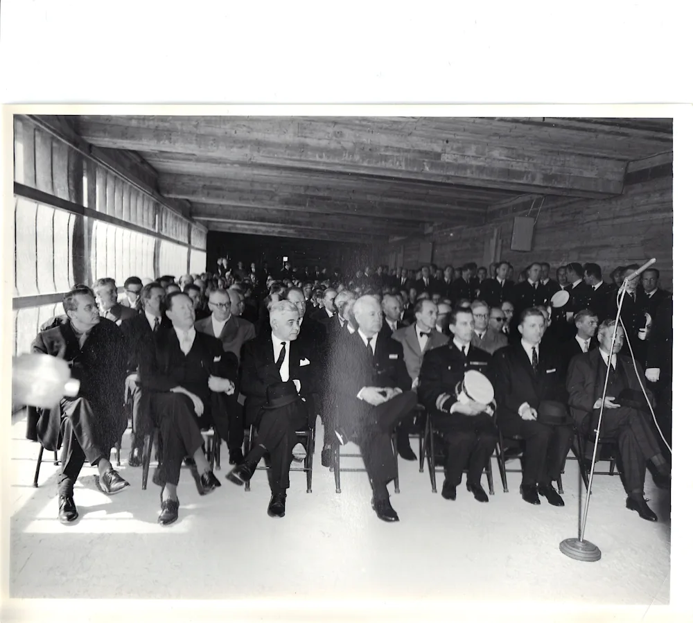 Margt fyrirmenna var samankomið þegar hornsteinn var lagður að lögreglustöðinni 1. júní 1963, en við látum lesendum eftir að þekkja þessa þjóðkunnu menn á myndinni.