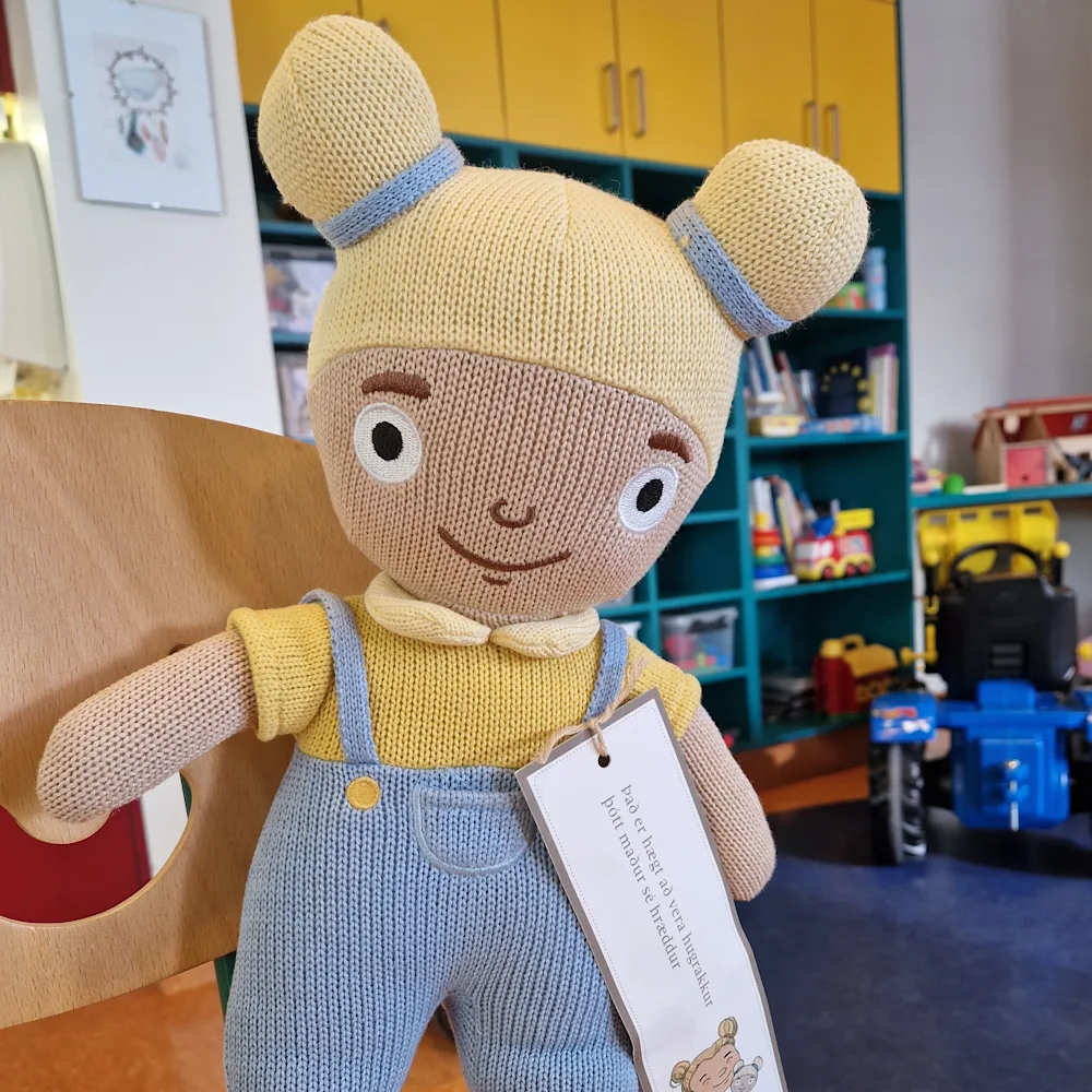 Síðan þá hefur Míu verkefnið stækkað og út er komin önnur bók og dúkka með meiningu. Míu dúkkunni er ætlað að gefa langveikum börnum auka hugrekki í lífinu eins og segir á miða sem fylgir dúkkunni.