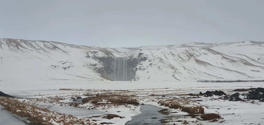 Mjög lítið rennsli er nú í Skógá og þar með Skógarfossi. Kunnugir hafa bent á að það geti stafað af krapastíflu í ánni sem síðan ryðji sig og við þær aðstæður geti komið flóð fram ána. Ekki hafa fundist heimildir um mögulega stærð slíks flóðs og að líkindum skiptir þar miklu máli hvar slík stífla er staðsett. Til öryggis hefur ferðamönnum verið vísað fjær fossinum og eru lögreglumenn og björgunarsveitarmenn nú þar á svæðinu við þá vinnu. Vatnamælingasviðið veðurstofu hefur verið gert viðvart um málið. Veðurfarslegar aðstæður eru þannig að ekki er unnt að skoða ofar í ána að sinni en það verður gert um leið og viðrar til þess.