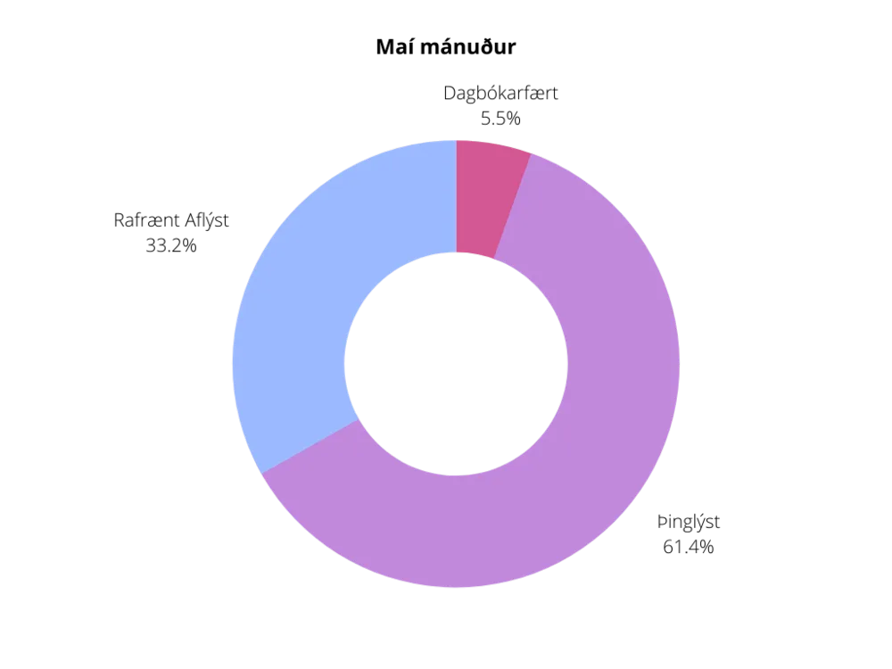 Síðan í febrúar hefur magn rafrænna aflýstra skjala tvöfaldast á milli mánaða og fór maí mánuður fram úr væntingum en um 2400 skjölum var aflýst rafrænt.
