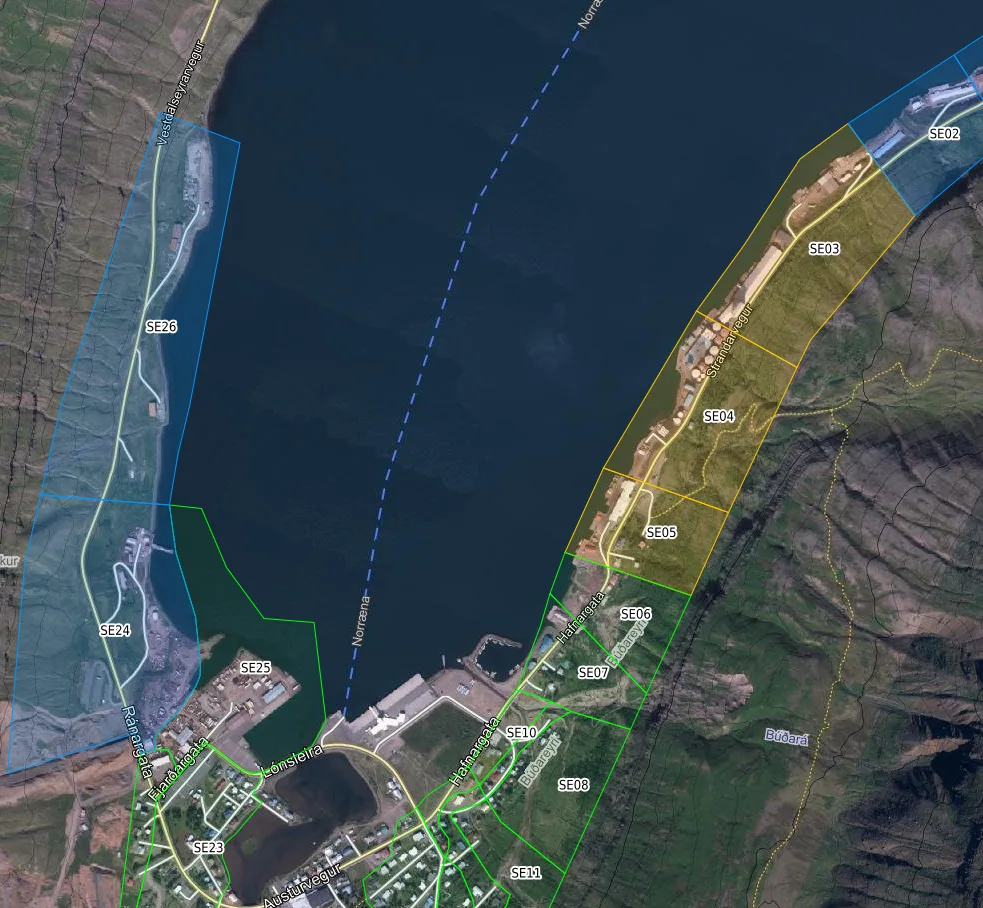 Viðbótarrýming var ákveðin í dag af hálfu Veðurstofu á þremur rýmingarreitum á Seyðisfirði – reitum SE03, SE04 og SE05, – sjá mynd hér að neðan en þau svæði sem um ræðir eru lituð gul.
