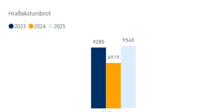 Hraðakstursbrot voru 9.540 og því talsvert fleiri en sumarið í fyrra (38% fleiri) (mynd 2) en fjöldi á hraðamyndavélum getur spilað þar inn í.