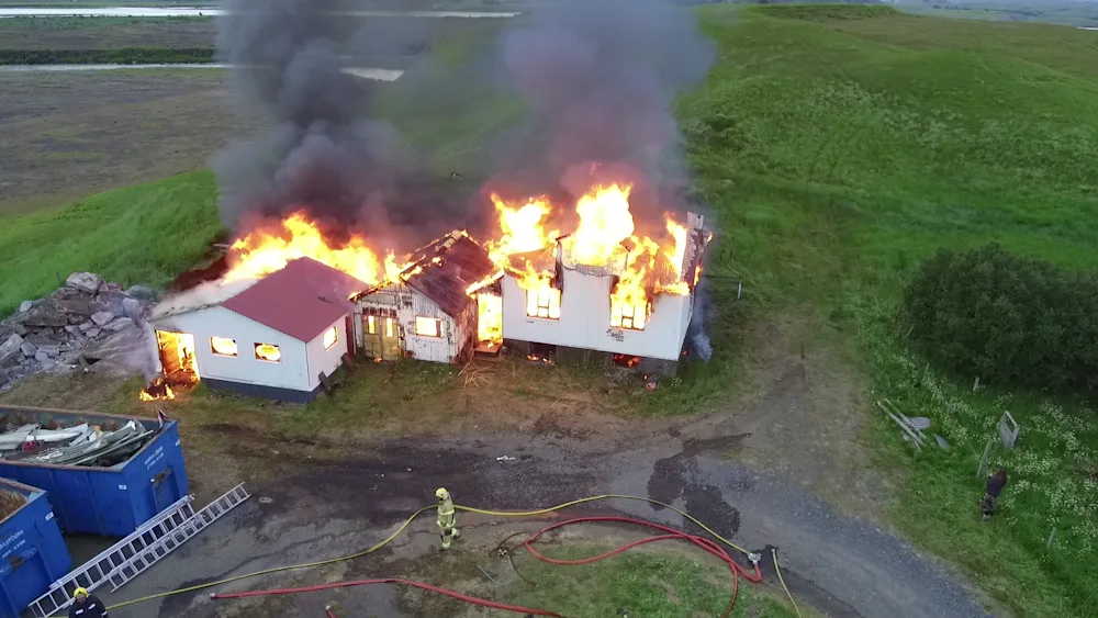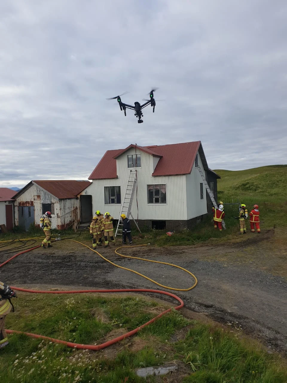 Verkefni sérsveitar ríkislögreglustjóra eru fjölbreytt eins og þau eru mörg. Á dögunum tóku liðsmenn þátt í æfingu Brunavarna Rangárvallasýslu þar sem reykköfun var æfð sem og slökkvistarf. Hlutverk sérsveitar var að greina og miðla upplýsingum af vettvangi svo stjórnendur í slökkvistarfi geti metið aðstæður. Dróni er notaður til þess. Hann er útbúinn hitamyndavél sem hjálpar til við að meta útbreiðslu elds, til að mynda í íbúðarhúsnæði. Á æfingunni með slökkviliðsmönnum var eldur kveiktur í gömlu íbúðarhúsnæði á Suðurlandi sem ekki er lengur í notkun. Æfing sem þessi nýtist sérsveit vel þar sem tæknileg atriði eru prófuð.