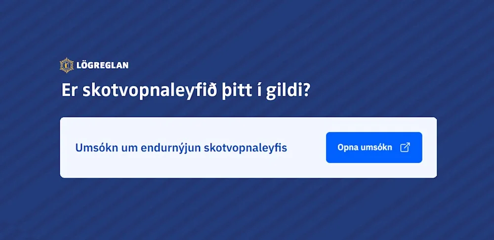 Við viljum beina því til skotvopnaeigenda að öll umsýsla með skotvopn er í dag í gegnum rafræna gátt á https://island.is/skotvopnaleyfi. Þar geta skotvopnaeigendur sótt um heimild til að kaupa skotvopn, tilkynnt um sölu skotvopns eða lán, sem og endurnýjað skotvopnaleyfi sitt, svo fátt eitt sé nefnt.