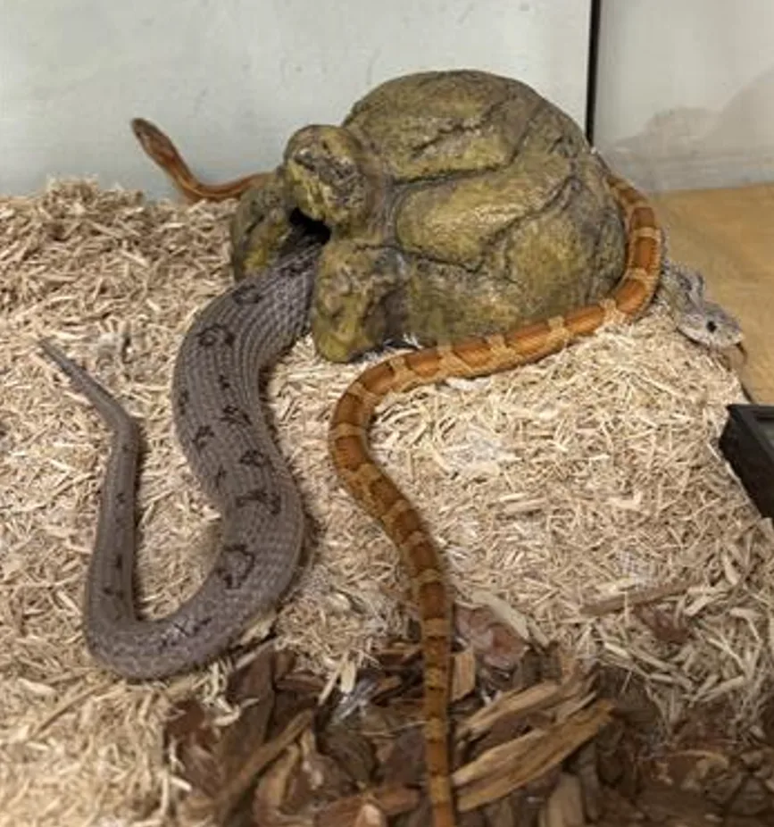 Að eiga við snáka er ekki daglegur viðburður, en gerist endrum og eins. Þessir tveir fundust í heimahúsi á höfuðborgarsvæðinu og voru haldlagðir, en hér er um að ræða brot á lögum um innflutning dýra. Í framhaldinu voru gerðar viðeigandi ráðstafanir, en í því felst að lóga og farga dýrum sem þessum.