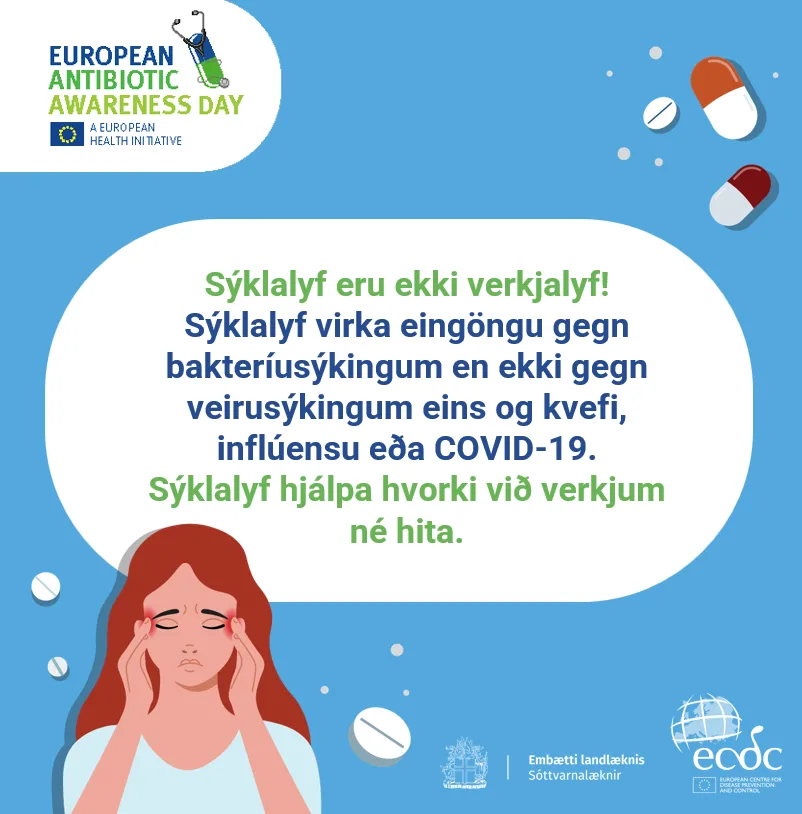 Dagurinn 18. nóvember er sérstaklega helgaður vitundarvakningu um sýklalyf hjá Sóttvarnastofnun Evrópu (ECDC). Sama dag hefst vitundarvika um sýklalyfjaónæmi á vegum Alþjóðaheilbrigðismálastofnunarinnar (WHO). Tilgangur þessarar vitundarvakningar er að minna almenning, stjórnvöld, heilbrigðisstarfsfólk og aðra aðila á þá ógn sem stafar af útbreiðslu sýklalyfjaónæmra baktería í heiminum. Sjá nánar á vef embættis landlæknis.