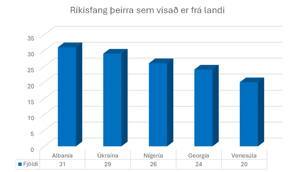 Fjölmennasti hópurinn er sem vísað er frá landi eru einstaklingar frá;