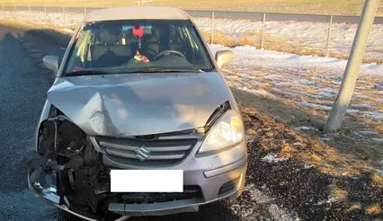 Þriðjudaginn 12. janúar kl. 7.59 stöðvaði ökumaður í Háholti við Krónuna. Þegar farþegi steig út úr bifreiðinni var annarri bifreið ekið fram með henni. Ökumaður þeirrar bifreiðar reyndi að beygja undan, en lenti við það á nálægu umferðarskilti og á farþeganum, sem var síðan fluttur á slysadeild.