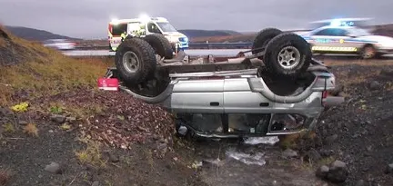 Tvö umferðarslys voru tilkynnt þriðjudaginn 25. október. Kl. 10.18 fór hópbifreið út af Þingvallavegi við Bugðu á leið til austurs og valt yfir á hægri hlið áður en hún stöðvaðist. Fjörutíu og tveir voru í bifreiðinni, þar af fjörutíu erlendir ferðamenn, ökumaður og leiðsögumaður. Sautján farþegar voru fluttir á Landspítalann. Aðrir, sem voru rútunni, tuttugu og fimm talsins, voru fluttir í fjöldahjálparstöð Rauða krossins í Mosfellsbæ. Og kl. 14.10 féll drengur af vespu er hann var á leið til vesturs á gangbraut yfir Reykjavíkurveg sunnan Flatahrauns. Drengurinn var fluttur á slysadeild.