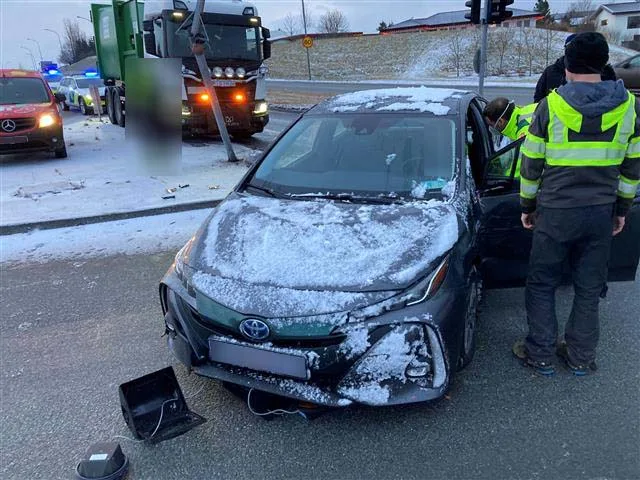 Miðvikudaginn 12. janúar kl. 11.09 var fólksbifreið ekið á hægri akrein suður Strandveg og vörubifreið var ekið á vinstri beygjuakrein sömu leið að gatnamótum Hallsvegar/Gullinbrúar þegar árekstur varð með bifreiðunum. Við áreksturinn missti ökumaður fólksbifreiðarinnar stjórn á henni og hafnaði bifreiðin á umferðarljósastýringu gatnamótanna. Ökumaður fólksbifreiðarinnar var fluttur á slysadeild.
