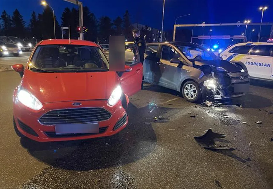 Þriðjudaginn 21. febrúar kl. 19.17 varð tveggja bíla árekstur á gatnamótum Miklubrautar og Kringlumýrarbrautar í Reykjavík. Í aðdragandanum var annarri bifreiðinni ekið austur Miklubraut, en hinn suður Kringlumýrarbraut. Grænt ljós var fyrir umferð austur Miklubraut að sögn vitnis. Annar ökumannanna var fluttur á slysadeild.