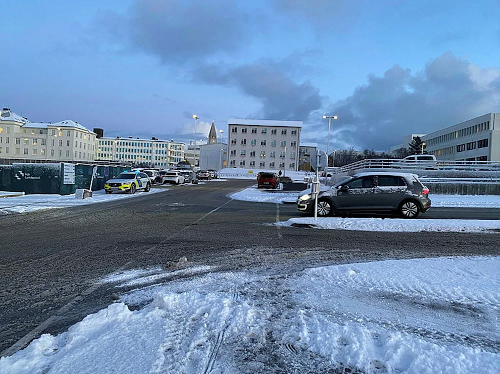 Meðfylgjandi er mynd frá vettvangi, en tekið skal fram að bifreiðin á gatnamótunum er með öllu ótengd slysinu.