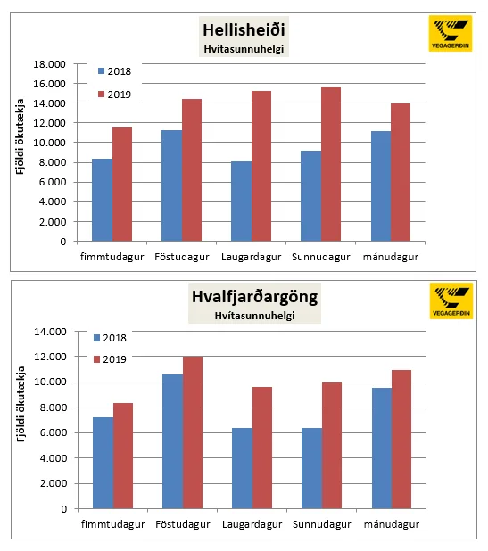 Hafi einhverjum þótt umferðin út úr borginni vera mikil um hvítasunnuhelgina, og mun meiri en í fyrra, hafa hinir sömu rétt fyrir sér eins og lesa má um á heimasíðu Vegagerðarinnar, en þetta á bæði við um Hellisheiði og Hvalfjarðargöng. Mikil umferð kann að pirra einhverja, en þá er bara að draga djúpt andann og slaka á. Við slíkar aðstæður er líka gott að hafa tónlist við höndina, en við mælum sérstaklega með Lögreglukórnum sem tekst iðulega að koma öllum í gott skap!