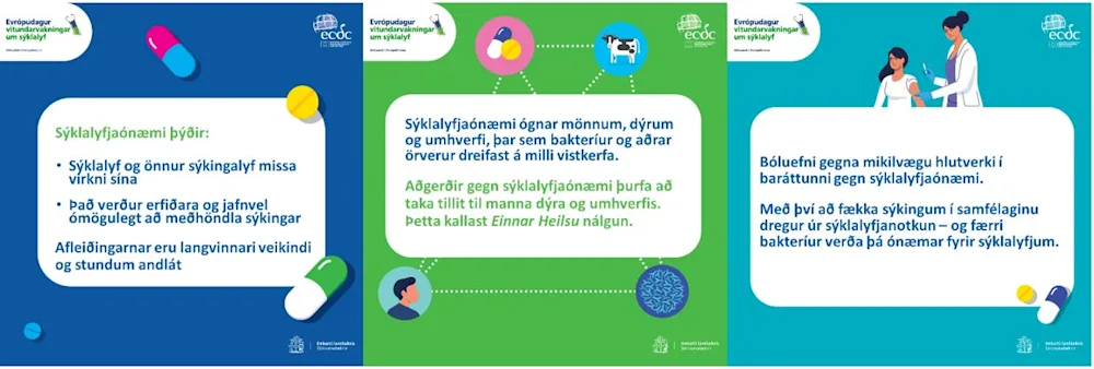 Íslendingar nota áfram meira af sýklalyfjum en aðrar Norðurlandaþjóðir. Heildarsala sýklalyfja fyrir fólk á Íslandi jókst árið 2022 miðað við tvö árin þar á undan en tímabundið dró úr tíðni annarra sýkinga árin 2020 og 2021 í COVID-19 faraldrinum, sennilega í tengslum við víðtækar sóttvarnaaðgerðir. Sama þróun sást í öðrum Evrópulöndum samkvæmt nýrri grein frá ECDC. Mikilvægt er að minna almenning, stjórnvöld, heilbrigðisstarfsmenn og aðra aðila á þá ógn sem stafar af útbreiðslu sýklalyfjaónæmra baktería en það er einmitt markmið þessarar árlegu vitundarvakningar.
