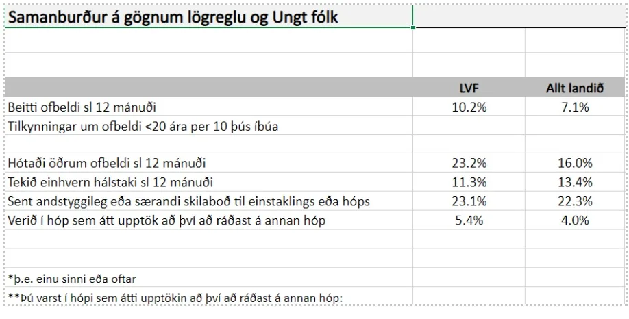 Greining gagna er undirstaða svæðisbundins samráðs um afbrotavarnir. Á fundinum kom m.a. fram að hærra hlutfall barna á Vestfjörðum segist hafa beitt ofbeldi eða hótað ofbeldi síðastliðna 12 mánuði en að jafnaði á landsvísu samkvæmt gögnum Rannsóknar og greiningar. Sjaldgæft er að slík mál séu tilkynnt til lögreglu.