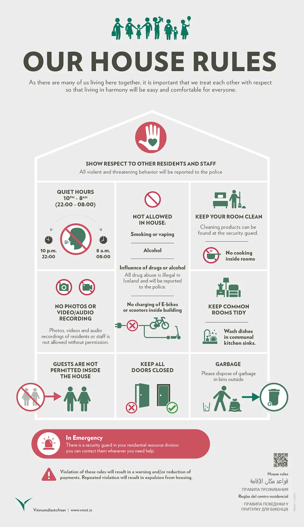 Sýndu öðru heimilsfólki og starfsfólki virðingu. Öll ógnandi hegðun og ofbeldishegðun er tilkynnt til lögreglu.