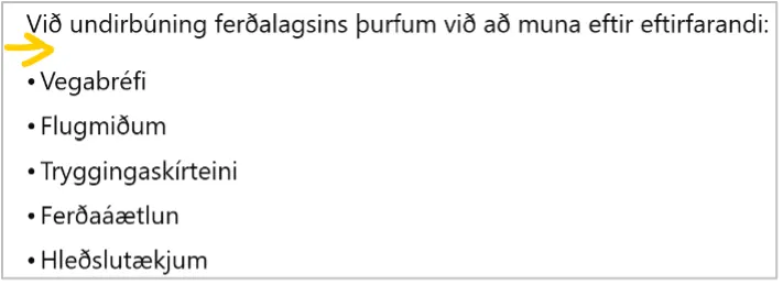 Inndráttur skal gerður með dálkahnappi (Tab), ekki bilstöng.