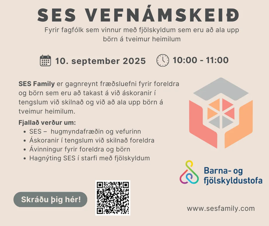 Barna- og fjölskyldustofa býður upp á ókeypis vefkynningu fyrir fagfólk um stafræna vettvanginn www.sesfamily.com (áður samvinnaeftirskilnad.is).
