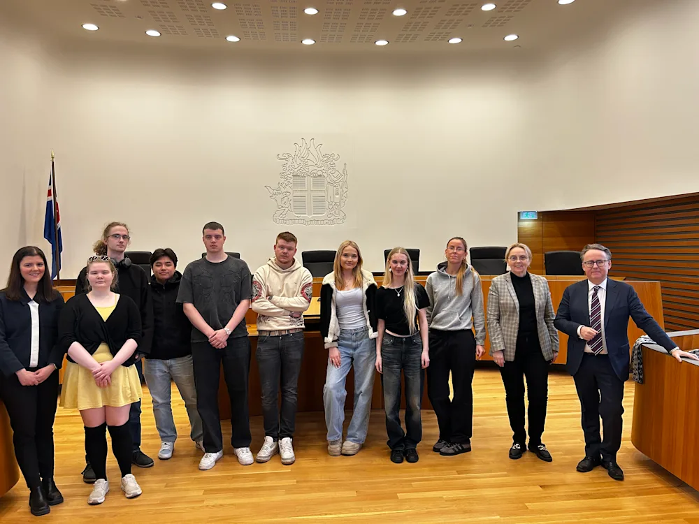 Með hópnum mætti kennari þeirra Ragnhildur Björg Guðjónsdóttir. Benedikt Bogason forseti Hæstaréttar,