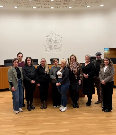 Síðastliðinn föstudag komu nemendur frá Háskólanum á Akureyri í heimsókn í Hæstarétt. Ása Ólafsdóttir hæstaréttardómari og Ivana Anna Nikolic aðstoðarmaður dómara tóku á móti þeim, kynntu starfsemi réttarins og svöruðu spurningum. Myndin var tekin við þetta tilefni.