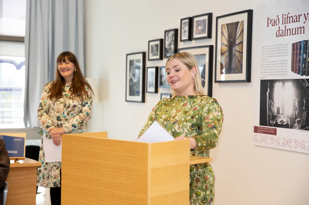 Arndís Þórarinsdóttir rithöfundur auk þess sem Marín Hrafnsdóttir forstöðumaður safnsins flutti ávarp.