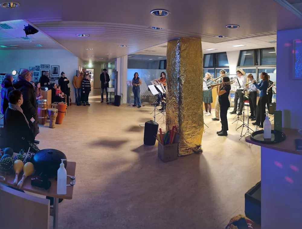 Mikið safn alls kyns tromma í eigu starfsmanna var til sýnis og ásláttar fyrir alla sem vildu og Skólahljómsveit Kópavogs lék nokkur fjörug lög sem mæltust vel fyrir. Gestum var boðið að skoða hljóðver safnsins, fylgjast með hljóðbókalesara að störfum og spreyta sig sem lesarar. Þrátt fyrir leiðindaveður voru gestir tæpt hundrað og skemmtu sér allir hið besta.