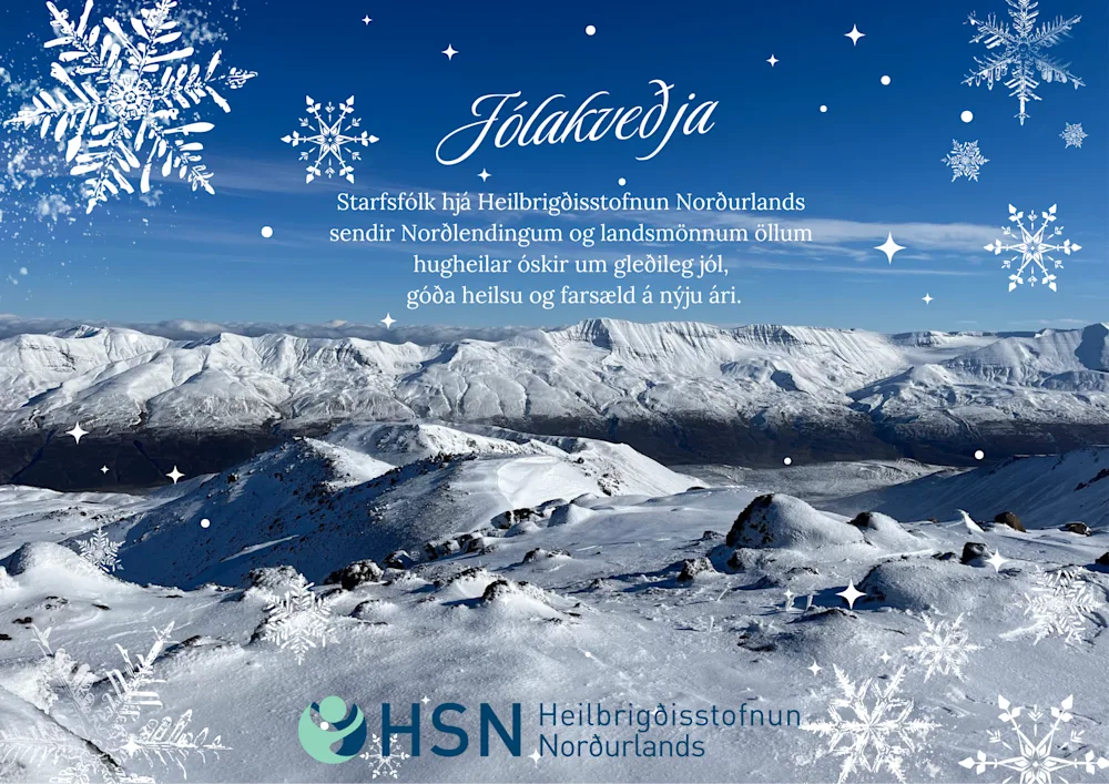 Starfsfólk Heilbrigðisstofnununar Norðurlands sendir Norðlendingum og landsmönnum öllum hugheilar óskir um gleðileg jól, góða heilsu og farsæld á nýju ári.