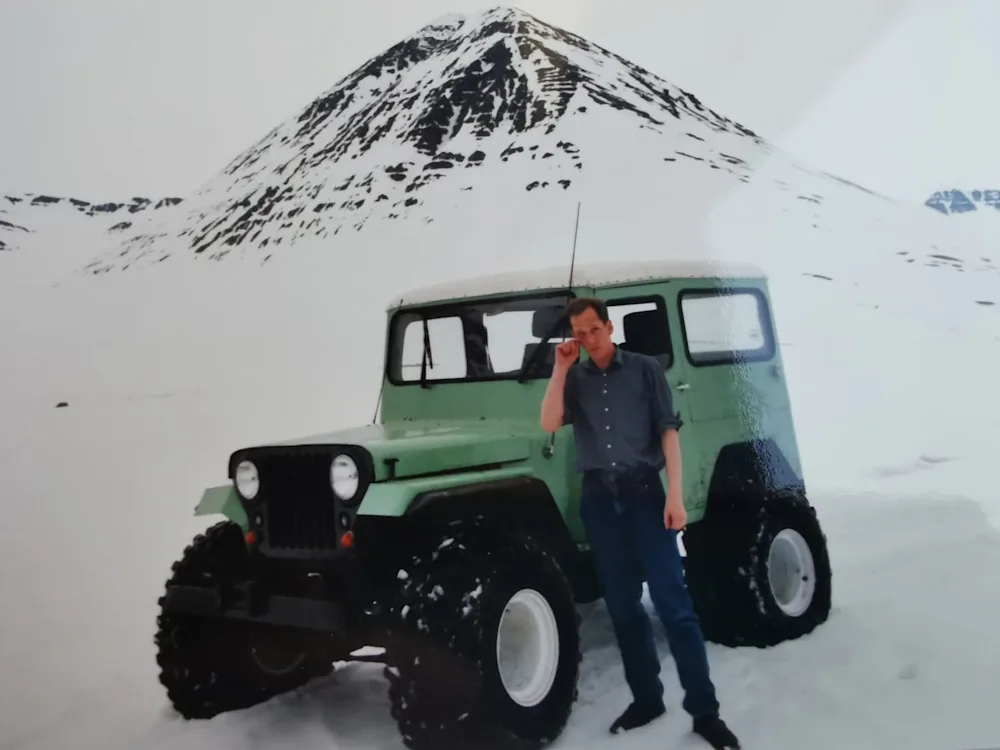 Andrés Magnússon og jeppinn sem hann keyrði fyrst 12 ára.