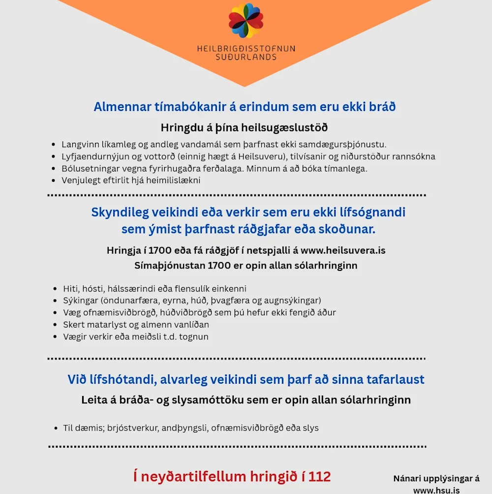 Mér finnst allir sem vinna á heilsugæslunni í Vestmannaeyjum alveg sérstaklega almennilegir og hjálplegir. Þau eiga hrós skilið sérstaklega þar sem að það er oft mjög mikið að gera en alltaf eru þau hlýleg