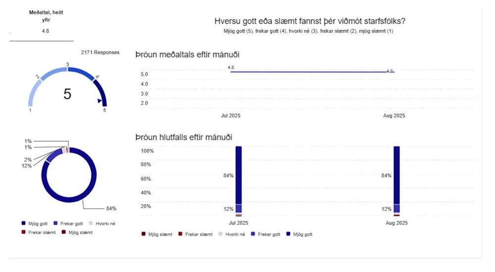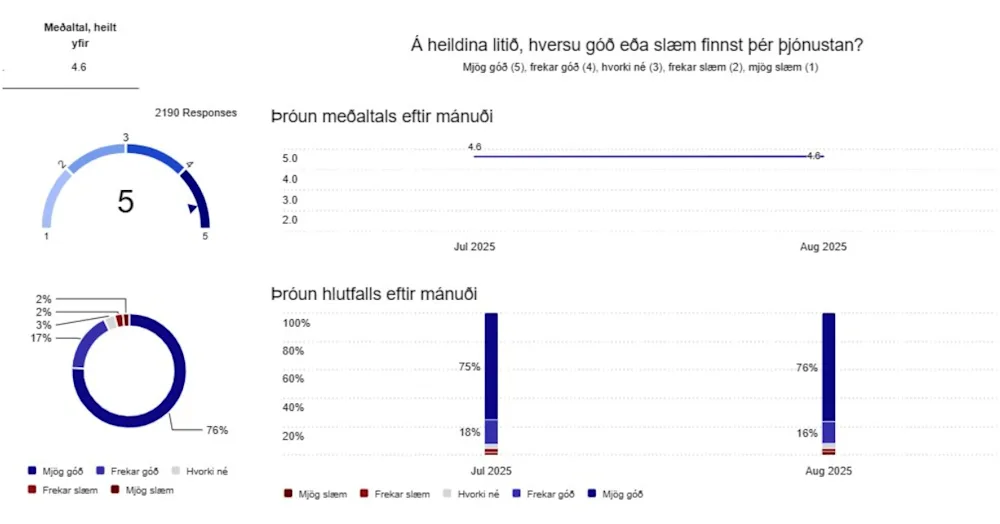 Í Júlí tók fjármála- og efnhagsráðuneytið ákvörðun um að skipta um þjónustuaðila á þjónustukönnun ríkisstofnana og er hún nú hjá Félagsvísindastofnun Háskóla Íslands. Mælaborðin hafa því breyst og gefa stofnuninni enn betra tækifæri til að rýna í niðurstöðurnar með það að markmiði að gera reglulegar umbætur.