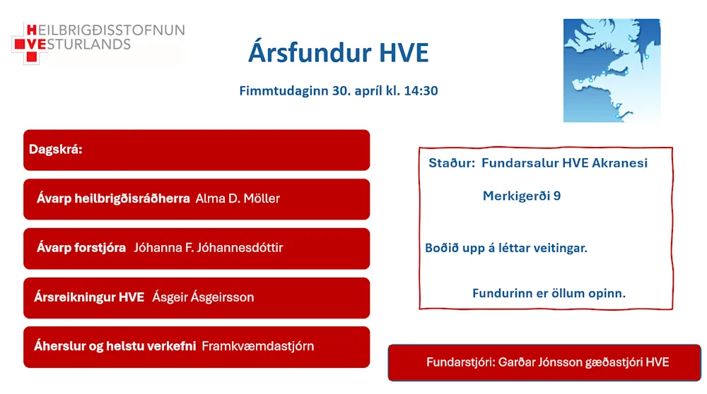 Ársfundur HVE verður haldinn fimmtudaginn 30.apríl kl. 14:30