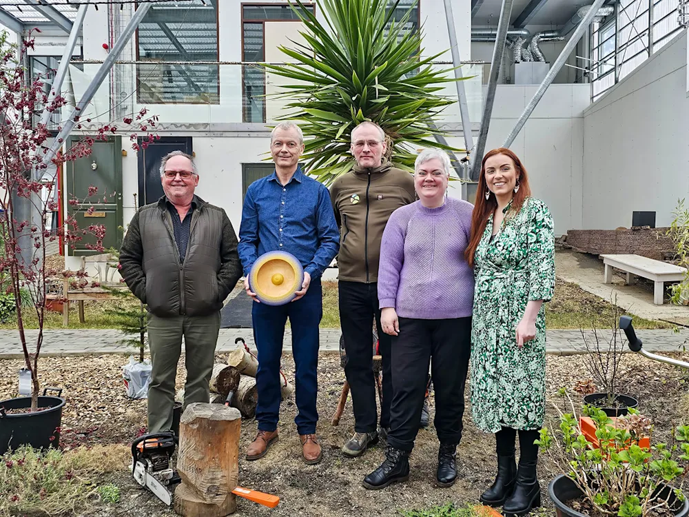 Á meðfylgjandi myndum má sjá verðlaunahafa ársins, Björgvin Örn Eggertsson, ásamt fulltrúum aðstandenda Hvatningarverðlauna skógræktar, Hirti Bergmann Jónssyni frá Bændasamtökum Íslands, Hreini Óskarssyni frá Landi og skógi, Ragnhildi Freysteinsdóttur frá Skógræktarfélagi Íslands og Sólrúnu Þórðardóttur frá Bændasamtökum Íslands.