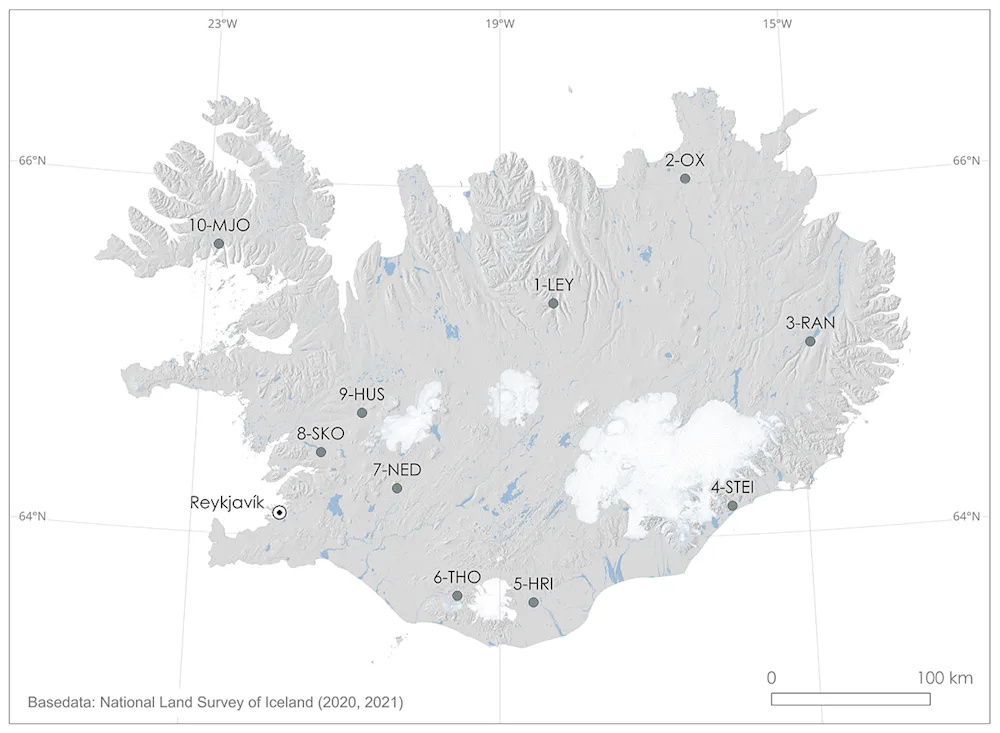 Rannsóknarsvæðin tíu voru dreifð um landið.
