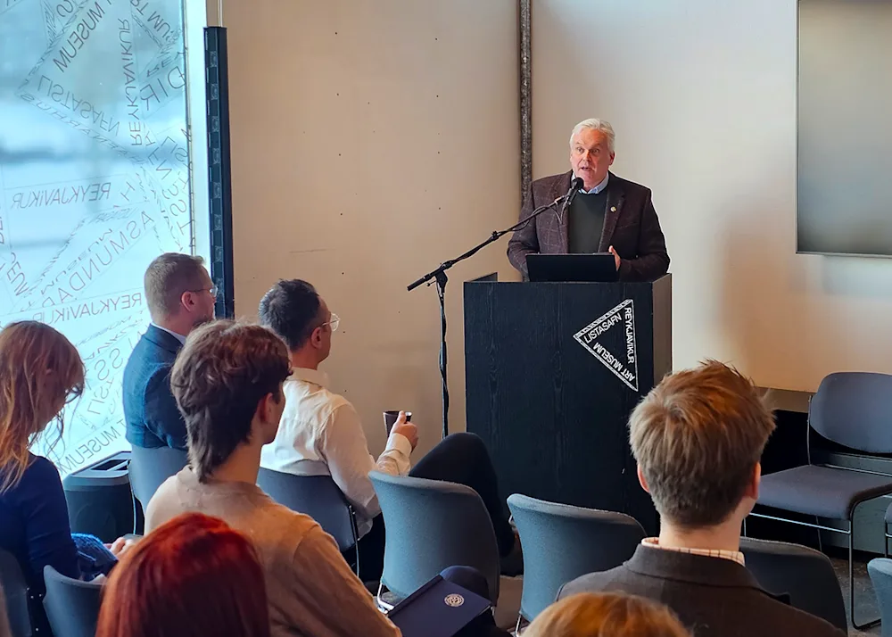 Jóhann Páll Jóhannsson ráðherra ávarpar málþingið um stöðu kolefnismarkaða. Ljósmynd: Pétur Halldórsson