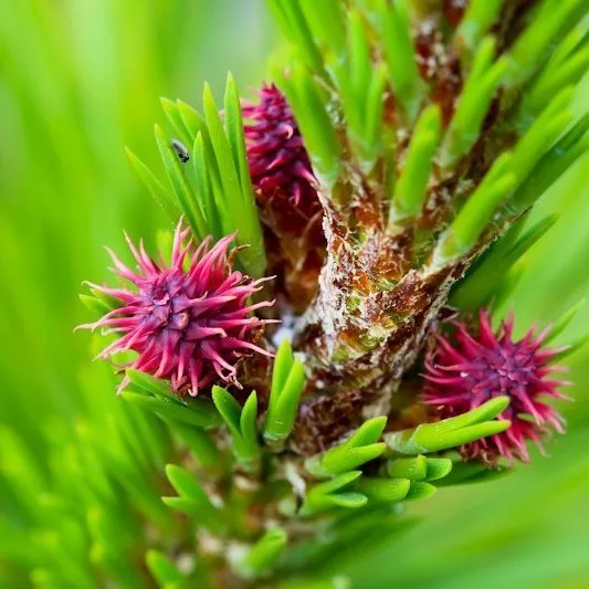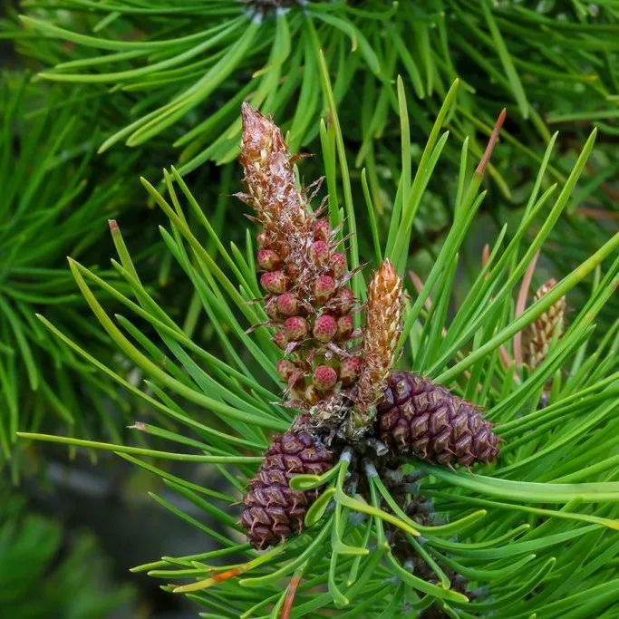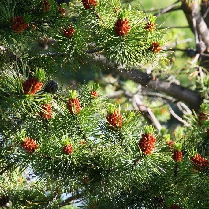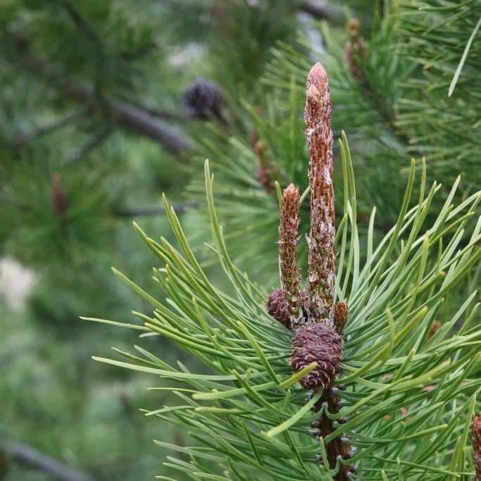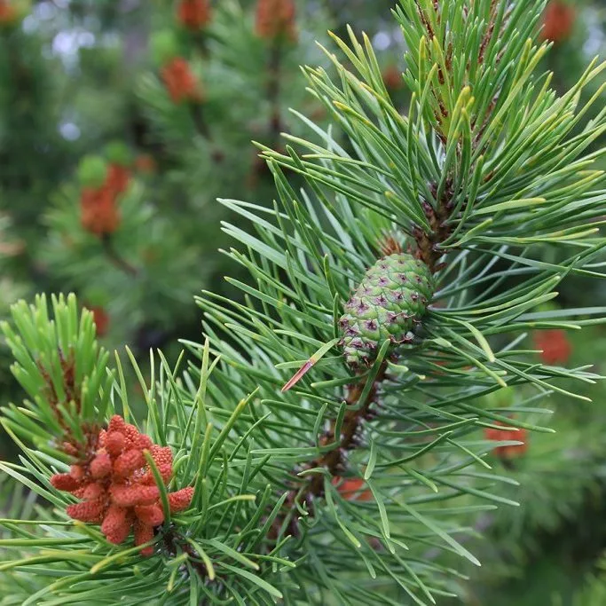 Vaxtarlag: Einstofna tré með misbreiða krónu, tvær eða þrjár nálar í knippi
