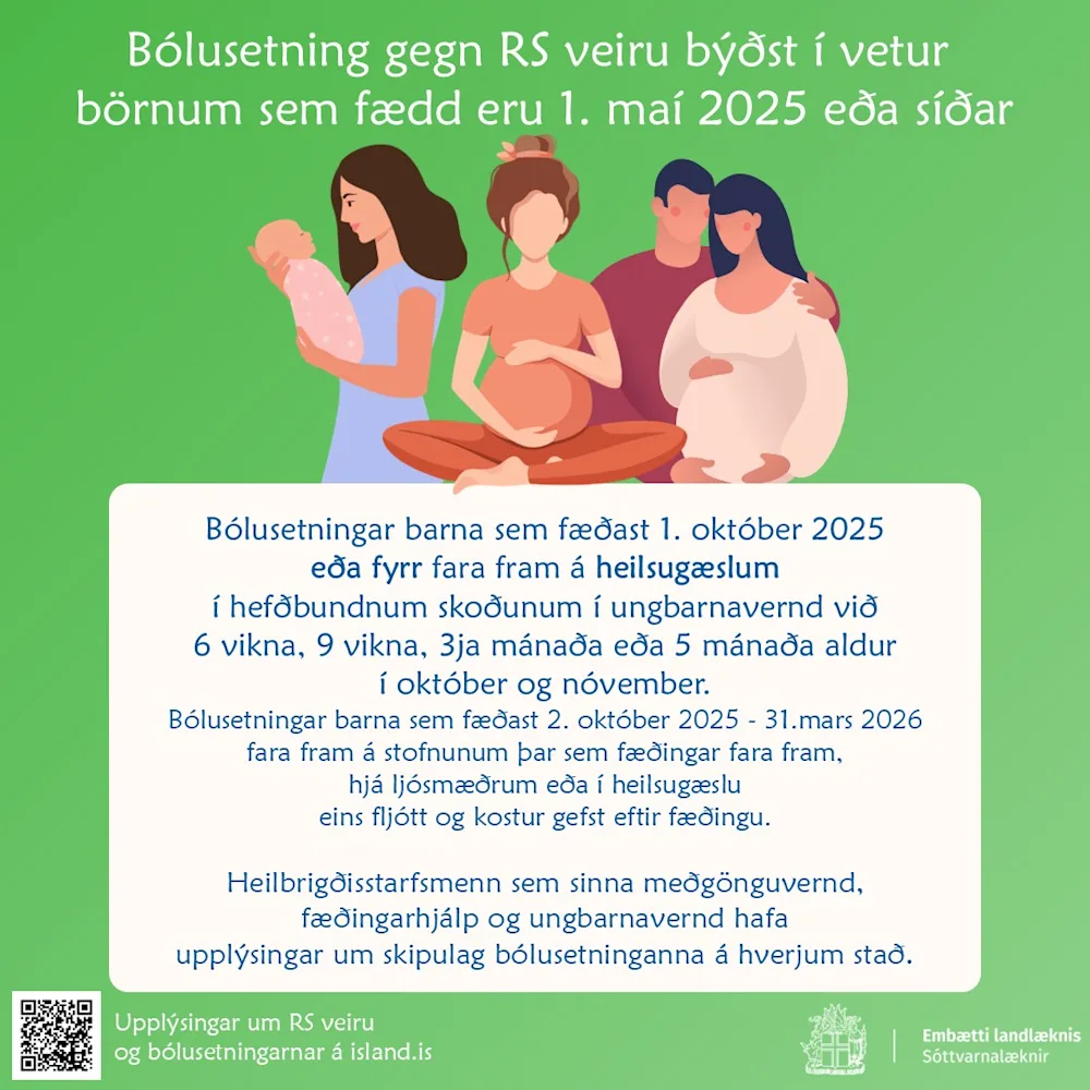 Nánari upplýsingar um RS veirusýkingar og bólusetningar gegn RSV má finna á vef embættis landlæknis.