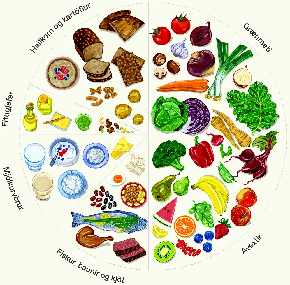 Embætti landlæknis hefur birt viðmiðunarmatseðla fyrir sjö daga í samræmi við Norrænar næringarráðleggingar 2023.