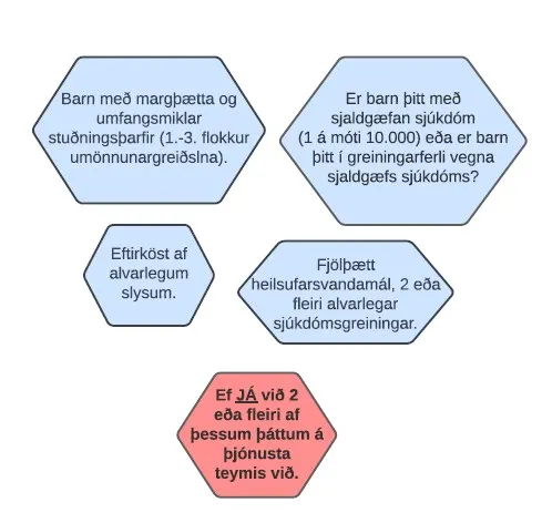Teymið veitir heildræna, fjölskyldumiðaða þjónustu fyrir börn með miklar umönnunarþarfir, meðal annars vegna sjaldgæfra sjúkdóma